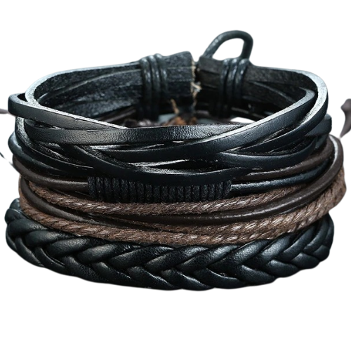 4Pcs Vintage Leather Wrap Bracelets Set for Men