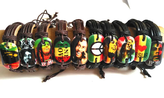 10Pcs Bob Marley Leather Bracelets & Pendants