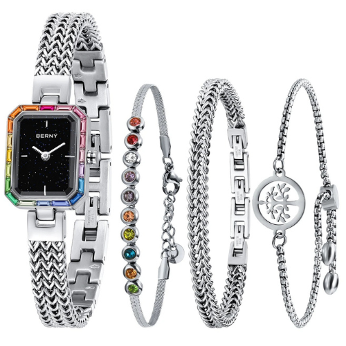 Women’s Gold Rectangle Quartz Watch & Bracelet Jewelry Set | BERNY
