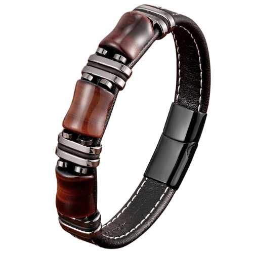 Trendy Tiger Eye Stone Bracelet with Black Leather Rope for Men